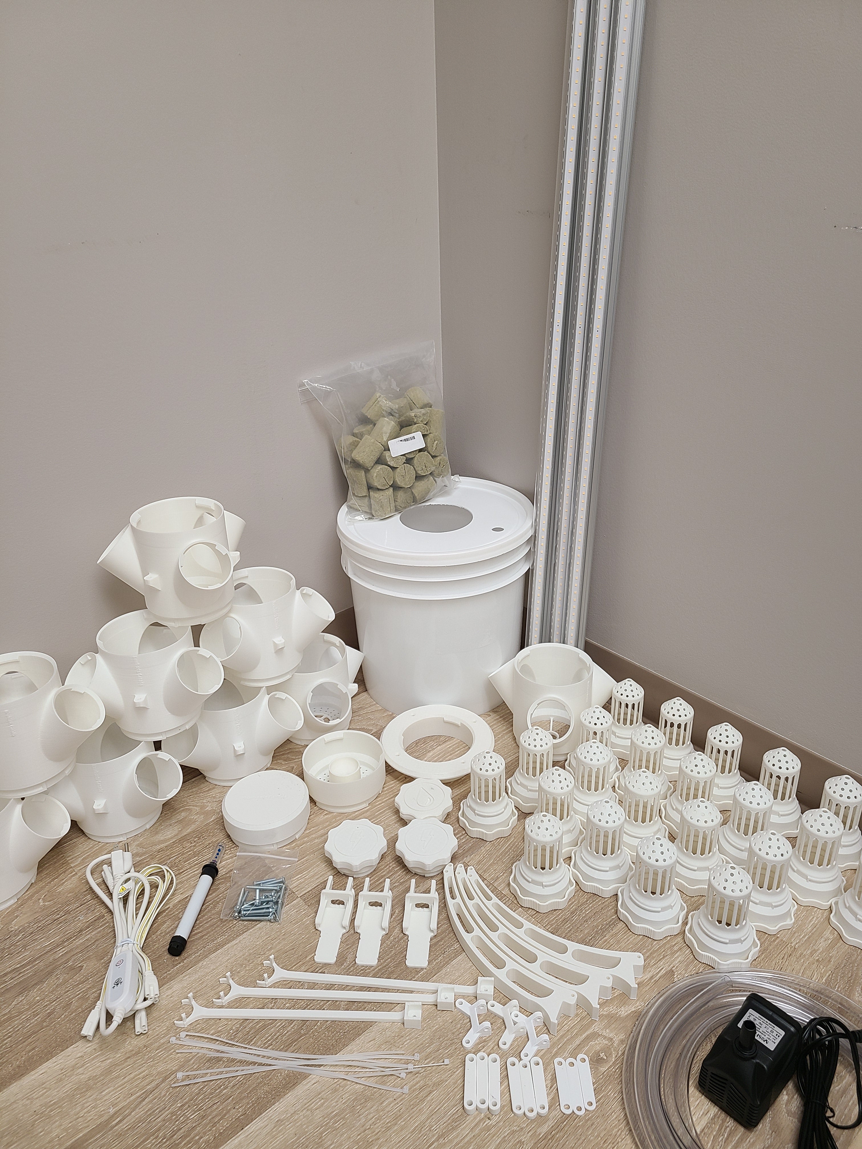Vertical Hydroponic Grow Tower - Large - 30 pods w/4ft LED Grow Light Kit
